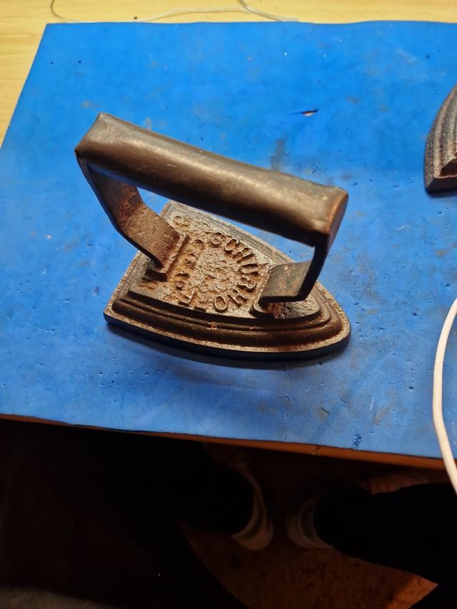 Detalles del productoAntigua plancha de hierro, ideal para decoración o coleccionismo. Se encuentra en buen estado de conservación, considerando su antigüedad.