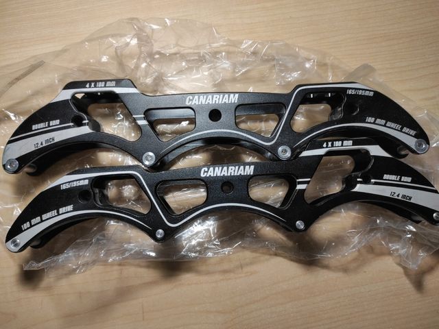Detalles del productoVendo juego de 2 planchas de aluminio marca Canariam para patinaje de velocidad, tienen muy poco uso y vienen con los pasadores para los rodamientos y fijación de ruedas.