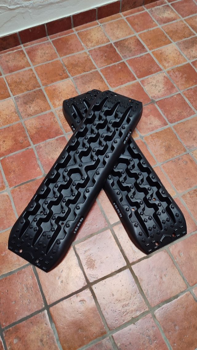 Detalles del productoJuego de dos planchas de rescate para vehículos todoterreno. Diseñadas para proporcionar tracción en terrenos difíciles como barro, arena o nieve.