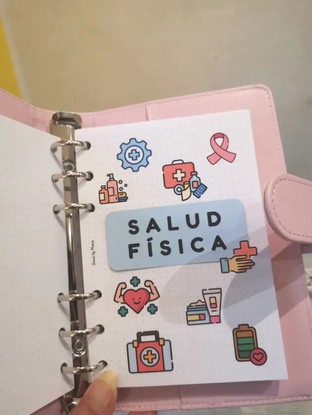 Detalles del productoVendo agenda/planner A6 de anillas. Color blanco por fuera y rosa por dentro. Tiene bolsillos.