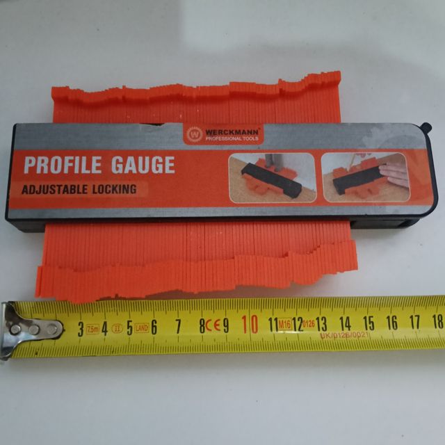Detalles del productoPlantilla de perfiles, herramienta de medición para carpintería y bricolaje. Está en buen estado.