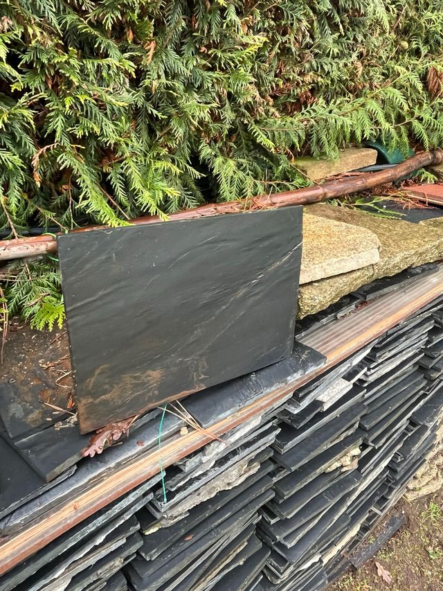 Plaquetas de pizarra natural, ideales para exteriores 100 metros cuadrados - Material: Pizarra. - Color: Negro/grisáceo con vetas. - Acabado: Natural.