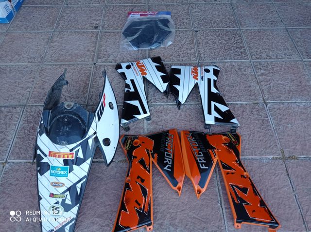 Detalles del productoplástica con pegatinas de KTM exc o sx y un portanumero nuevo sin estrenar de motocross tengo también el guardabarros delantero en naranja