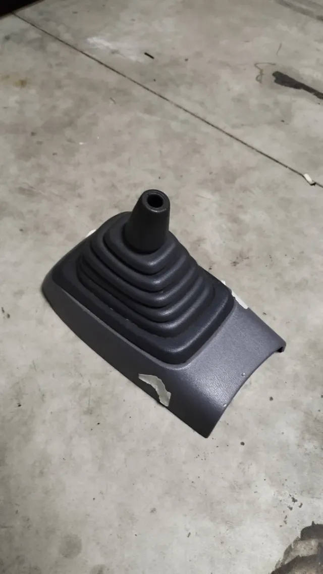 Pieza de plástico para el cambio de marchas de un Nissan Micra K11 Super S. - Funda de goma negra. - Base de plástico gris.