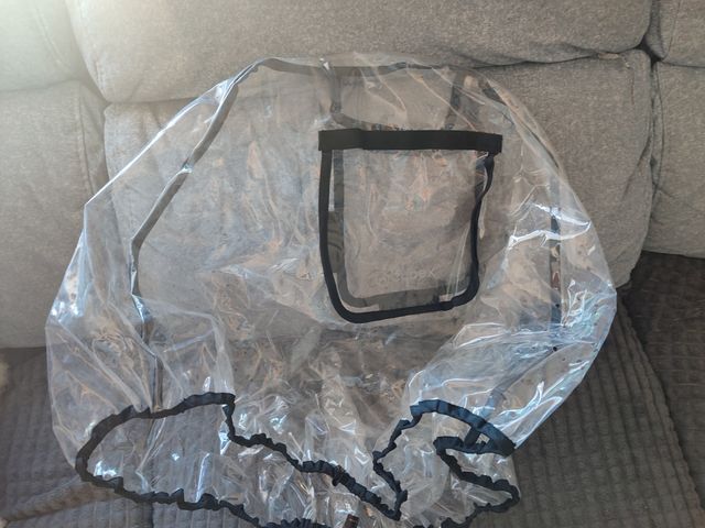 Plástico lluvia Cybex T i-Size. Está en buen estado, apenas tiene señales de uso. - Protege del viento y la lluvia. - Material plástico resistente y transparente. - Fácil de colocar y quitar.