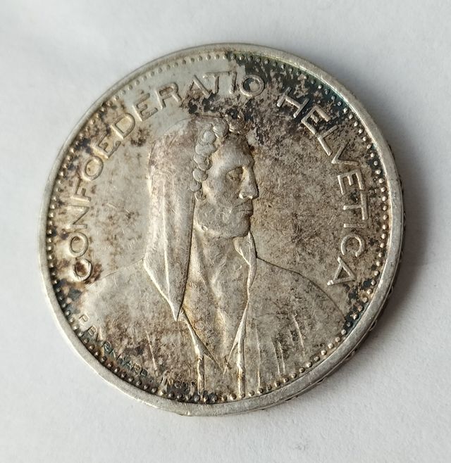 Detalles del productopreciosa moneda de plata de 5 francos suizos de 1939 B.