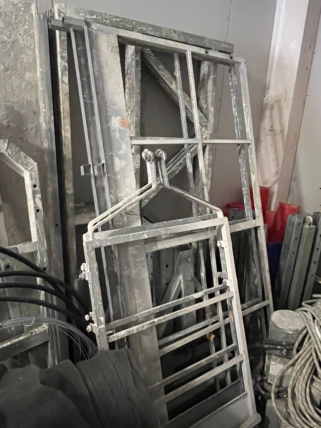Plataforma de andamio de metal, ideal para trabajos en altura. - Estructura robusta de metal. - Diseño de rejilla.