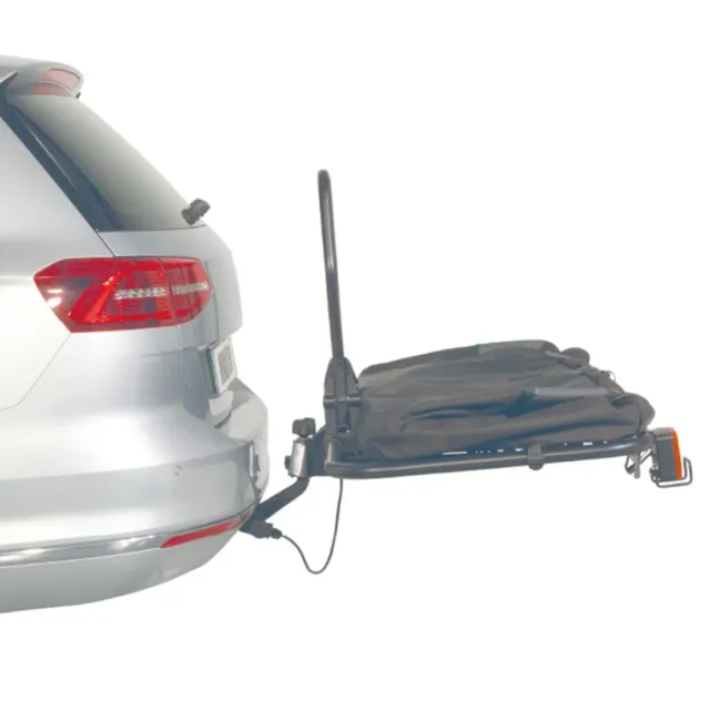 Cofre multiusos de tela Norauto de 500 litros pegable desmontable se convierte en plataforma para llevar 3 bicis y tambien en plataforma para llevar carga.