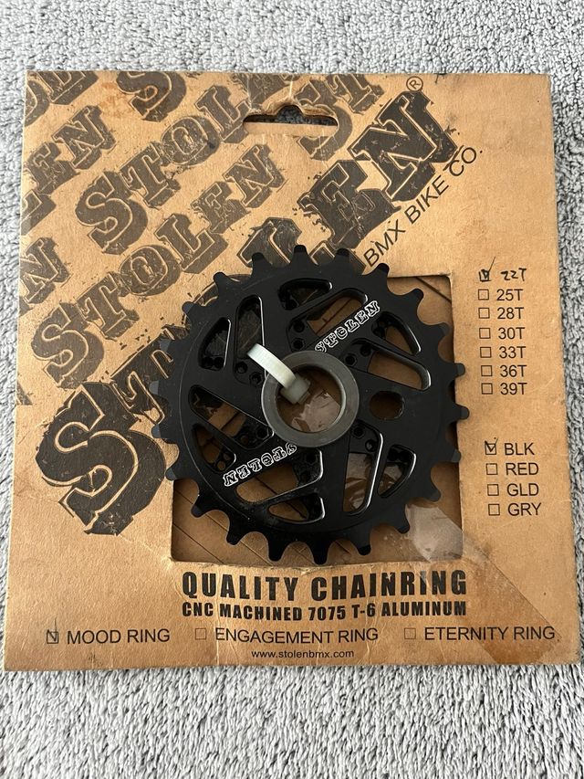 Plato Stolen de aluminio coñor negro. 22 dientes. Nuevo. Por estrenar.