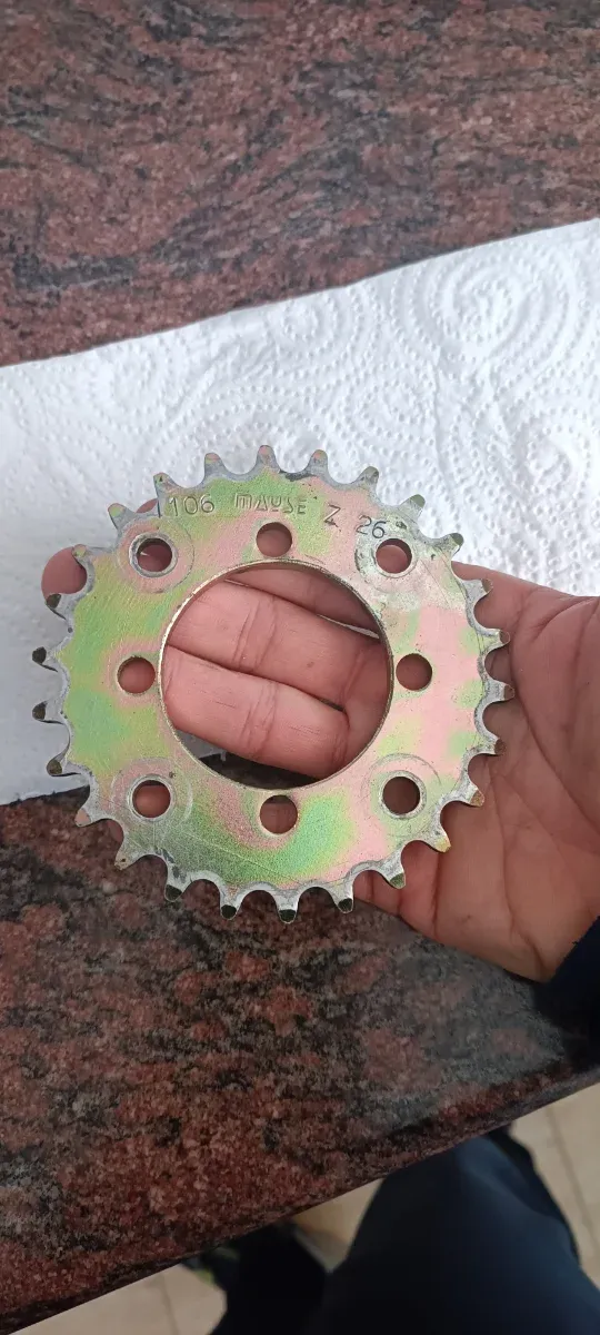 Detalles del productoPlato de arrastre para Derbi Variant, Z26 Mayse reforzado para cadenas 420 y 415, en perfecto estado usado un día !!