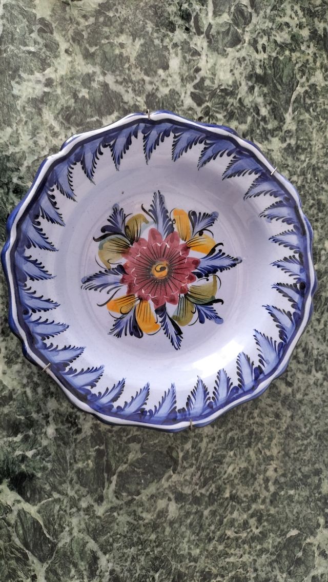 Detalles del productoBonito y antiguo plato para colgar de cerámica pintada a mano de Portugal con colgador y firma en la parte trasera