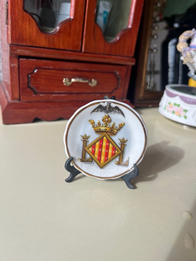 Pequeño plato decorativo con el escudo de la ciudad de Valencia. Ideal para coleccionistas o como detalle. - Diseño del escudo de Valencia. - Borde dorado.