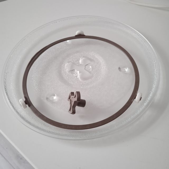Detalles del productoPlato giratorio para microondas en buen estado. Incluye el anillo de plástico y la pieza central. - Ideal para microondas de tamaño estándar. - Fabricado en cristal resistente. - Se encuentra en perfectas condiciones estéticas.