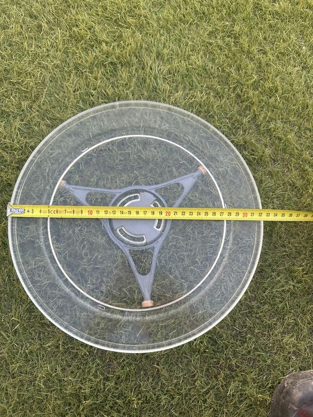 Detalles del productoPlato giratorio para microondas de cristal transparente. Tiene 32,5 cm de diámetro. Se encuentra en buen estado.