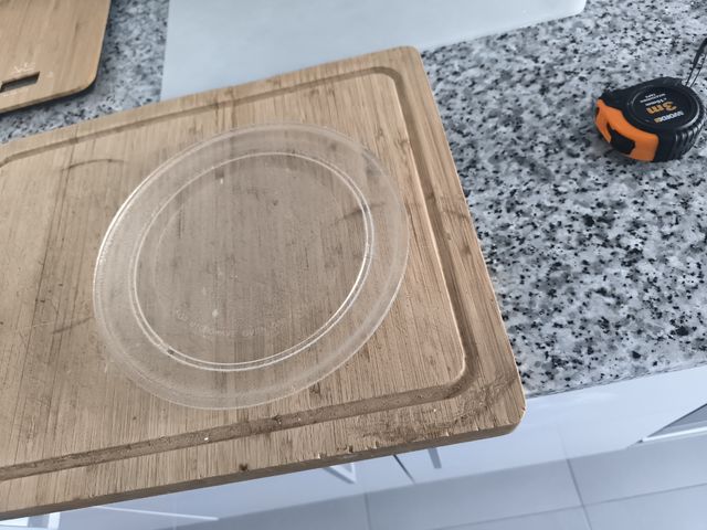 Plato de cristal para microondas, apto para uso alimentario. - Diámetro aproximado: 24.5 cm. - Material: Vidrio templado. - Apto para microondas.