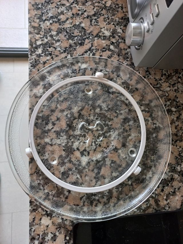 plato de microondas con un diámetro de 27 ctms. y ruedas giratorias