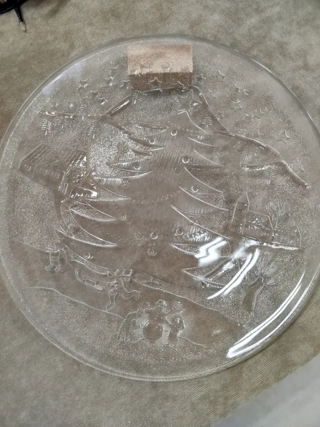Plato decorativo con diseño navideño. - cristal fuerte - Material de vidrio transparente. - Ideal para celebraciones o como pieza decorativa.