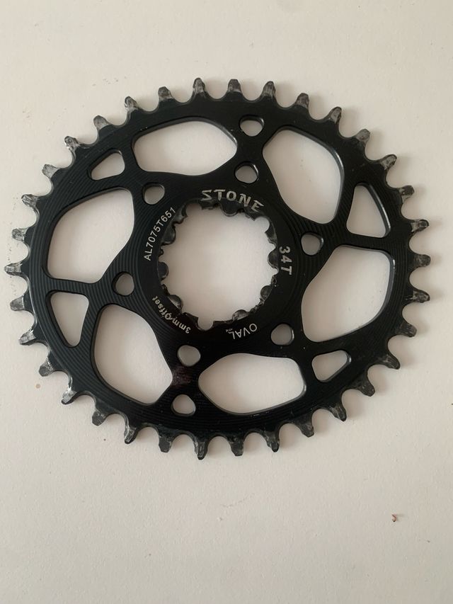 Plato ovalado de la marca Stone, con 34 dientes y offset de 3mm. - Material: AL7075T651 - Dientes: 34T - Forma: Ovalada - Offset: 3mm