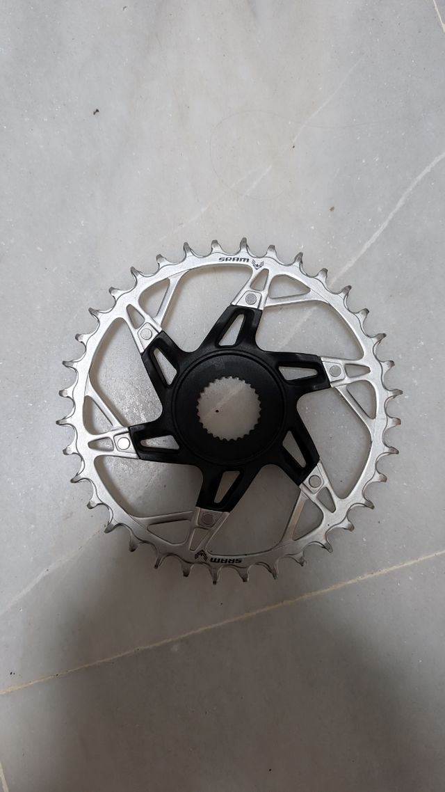 Detalles del productoPlato Sram T-Type de 36 dientes diseñado para motores Bosch. Fabricado en aluminio plateado con un núcleo negro central.