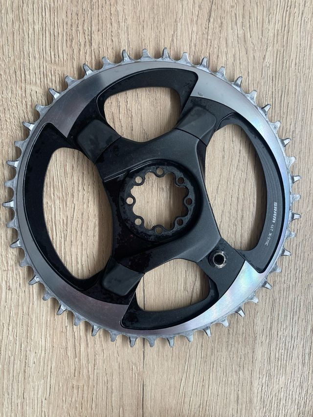Detalles del productoPlato de bicicleta SRAM RED 46T y cadena SRAM RED 12S FLATTOP 112 eslabones.