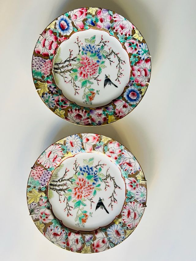 Platos decorativos chinos con diseño floral. Vintage / antiguos.