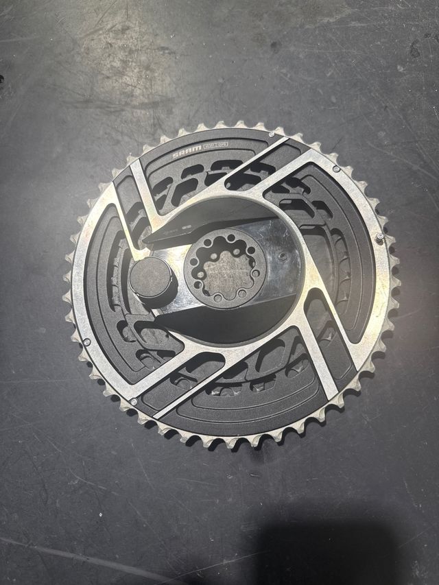 Platos SRAM Quarq con una relación de 48/35 dientes. Menos de 1000km. Vendo por cambio de desarrollo No tengo la tapa del potenciometro, la debi perder en alguna salida