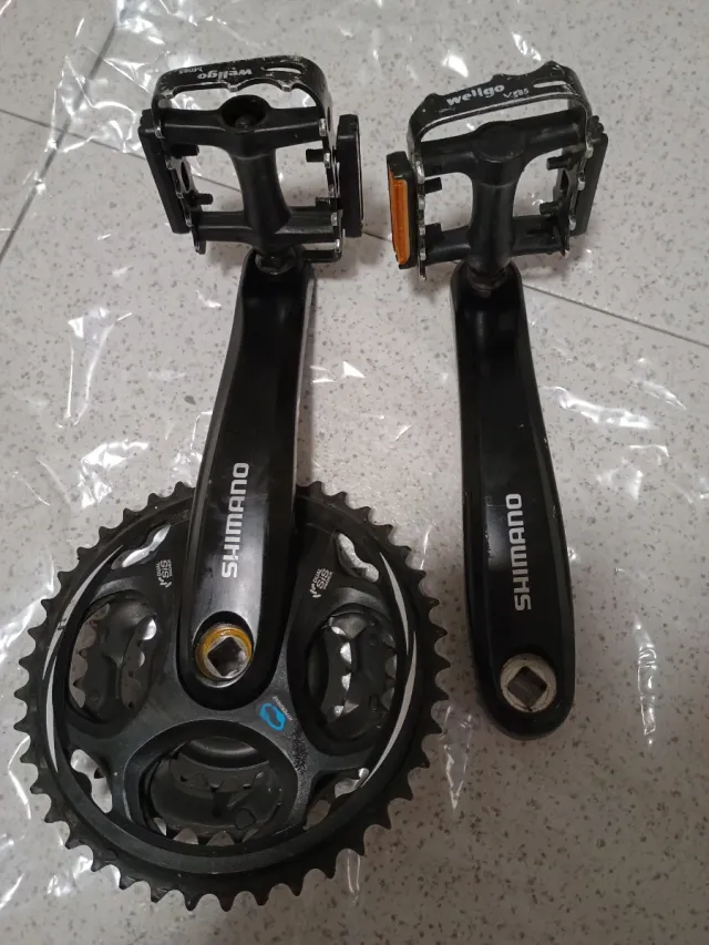 - 3 platos y Biela Shimano 175mm negras, eje rectangular ver fotos.