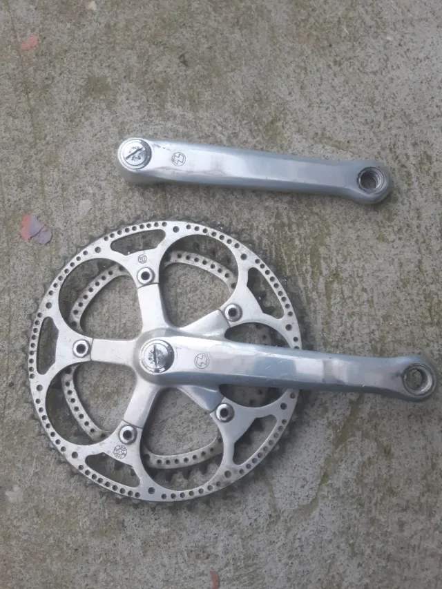 Conjunto de platos y bielas Zeus clásicos en aluminio. - Plato grande: 52 dientes. - Plato pequeño: 42 dientes. - Material: Aluminio.