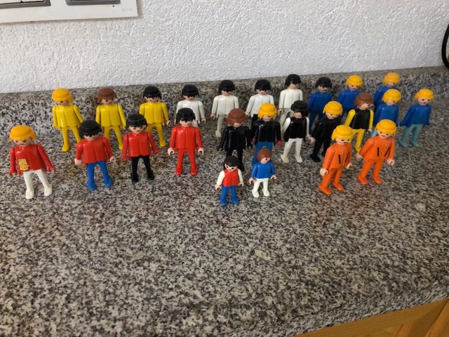 Colección de 25 muñecos originales de la marca Geobra de Playmobil de 1974. Los dos muñecos pequeños son de 1981