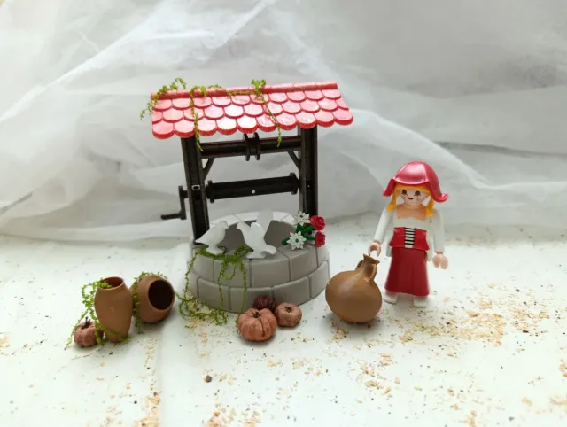 Detalles del productoSet de Playmobil que incluye una figura de aldeana y un pozo.