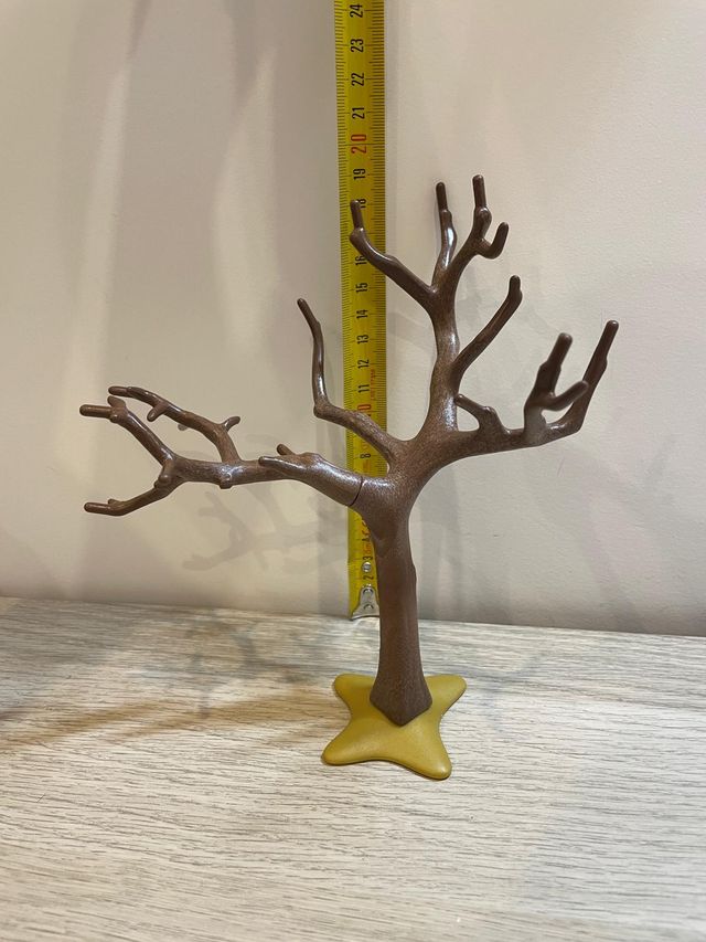 Detalles del productoÁrbol de Playmobil de color marrón, ideal para complementar escenarios de juego. La base es de color amarillo.