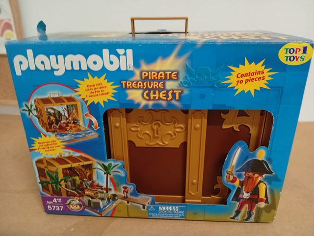 Detalles del productoCofre del tesoro pirata de Playmobil, modelo 5737. Contiene 70 piezas para recrear aventuras en la isla del tesoro.