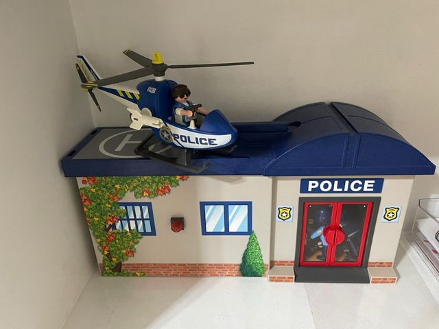 Detalles del productoSet de juego de Playmobil de la comisaría de policía con helicóptero.