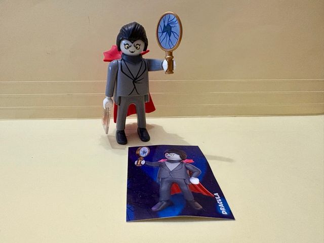 Detalles del productoFigura Playmobil de Drácula, el famoso vampiro. Es una figura en excelentes condiciones, lista para formar parte de tu colección.