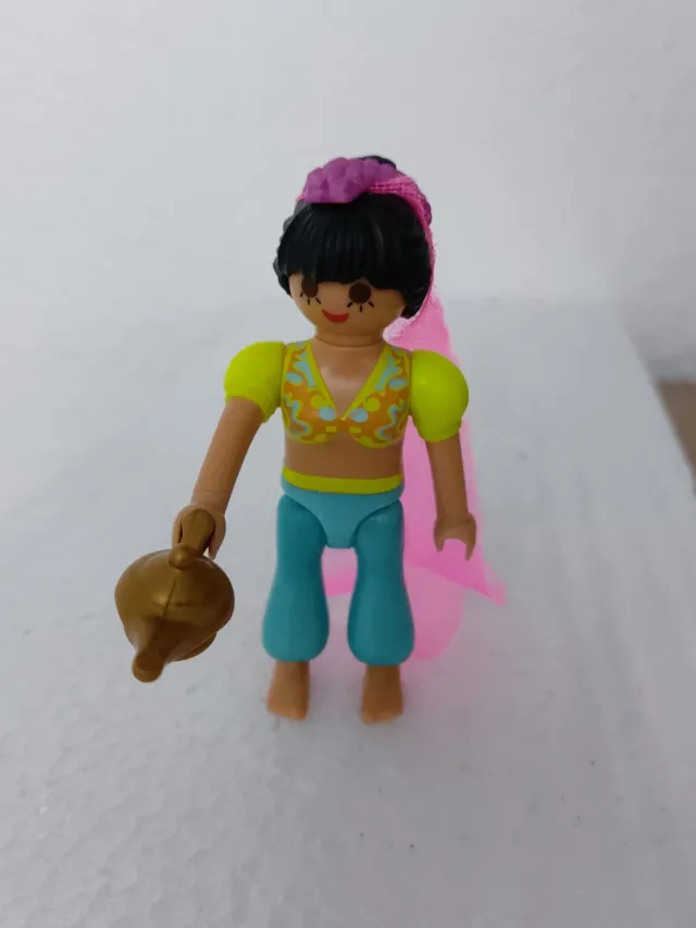 Figura de Playmobil inspirada en una princesa árabe, con su característica lámpara mágica. - Figura de plástico. - Incluye lámpara dorada. - Detalle de vestimenta oriental.