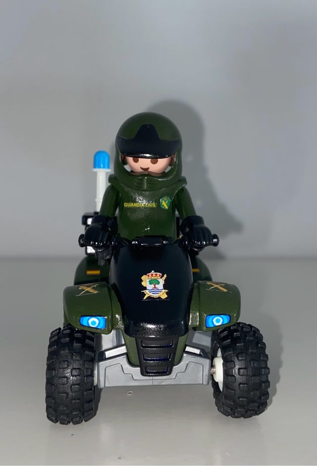 Detalles del productoPlaymobil customizado representando a guardia civil seprona con quad. Se realiza cualquier figura a partir de las fotos que nos envíes. La modificación o elaboración de sticker (nombre, insignias…) incrementará su precio 1€ más. Envío a toda España a través de correo ordinario o certificado. Envío a cargo del comprador. Pregunte sin compromiso!
