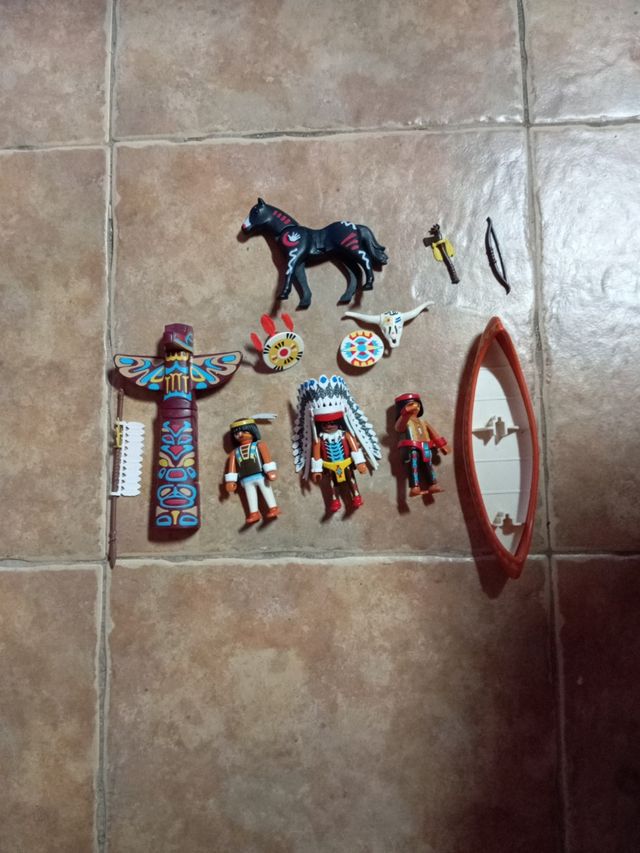 Detalles del productoSet de figuras de Playmobil de indios americanos con varios accesorios.