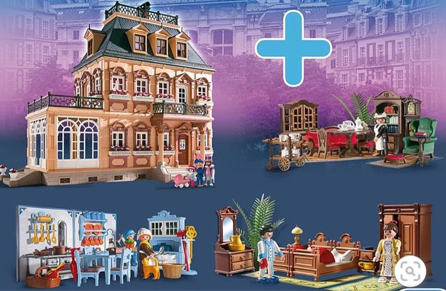 Detalles del productoConjunto de Playmobil que incluye casa victoriana grande y tres estancias (salón, cocina y dormitorio). Las referencias son: 70890, 70970, 70894 y 70971.