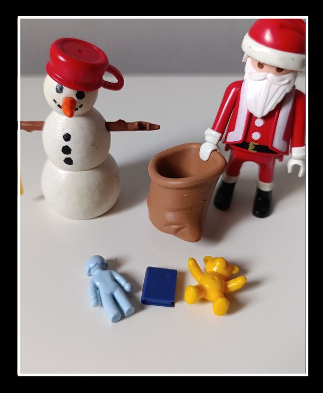 Set de figuras de Playmobil con Papá Noel y un muñeco de nieve.