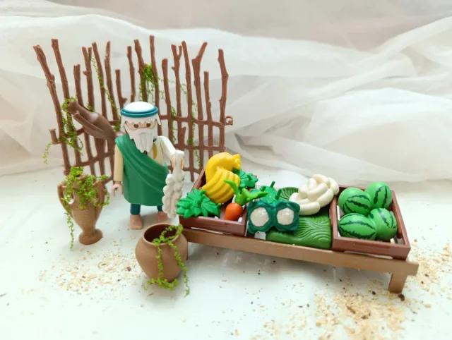 Detalles del productoSet de Playmobil que representa un puesto de mercado con frutas y verduras.