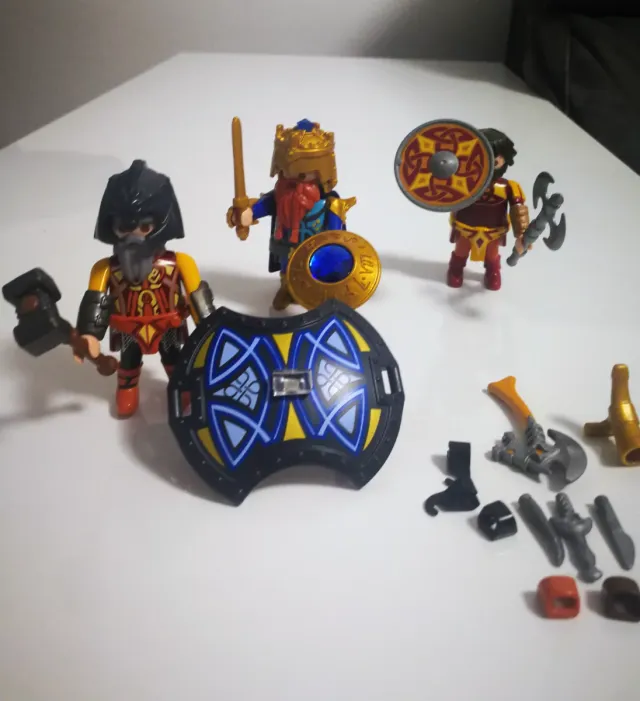 Detalles del productoSet de Playmobil que incluye al Rey de los Enanos, 2 luchadores y varios accesorios.