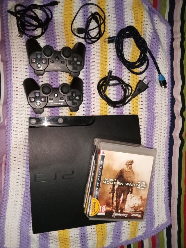 PlayStation 3 Negra con Juegos y Mandos