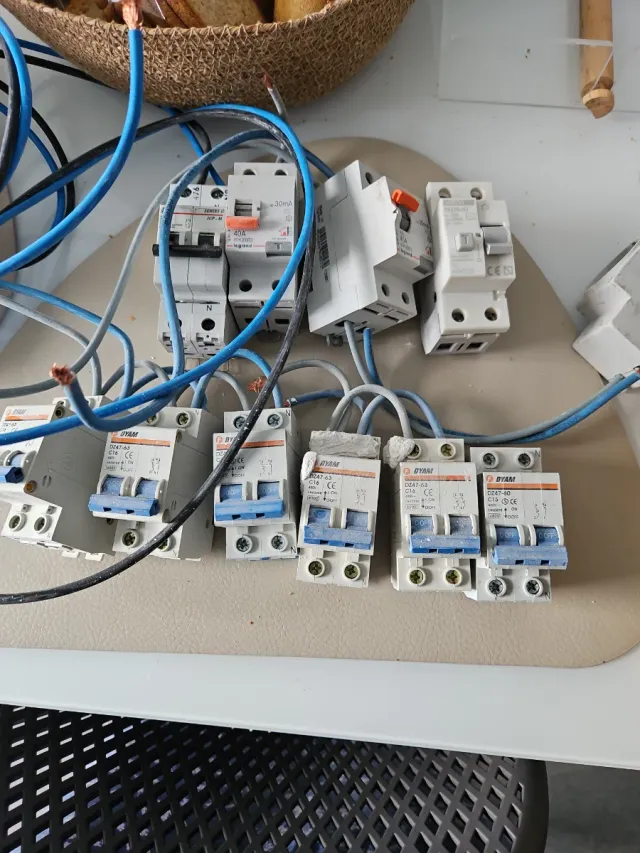 Detalles del productoLote de varios plomos eléctricos, incluyendo interruptores automáticos y diferenciales.