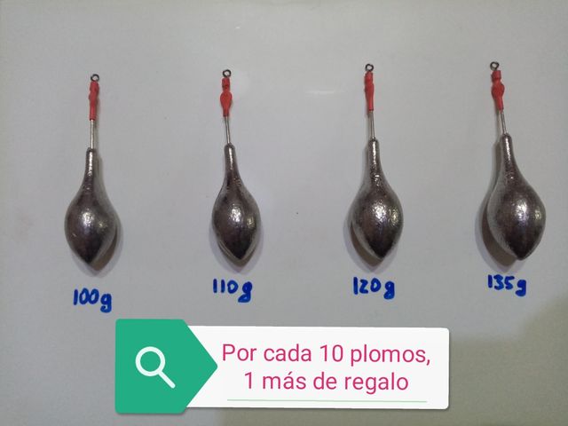 Detalles del productoPlomos tipo Portugues, disponible en 100 g, 110 g, 120 g y 135 g.