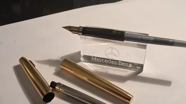 Pluma estilográfica Parker 75 INSIGNIA CISELE, CUERPO, CAPUCHON Y PLUMIN DE ORO 14K y CAJA PARKER VERDE