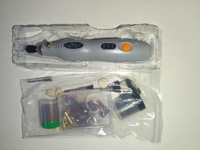 Detalles del productoHerramienta de tallado inalámbrica, ideal para trabajos de precisión. Se recarga fácilmente mediante USB.