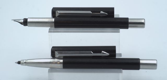 Conjunto de pluma y Roller Parker Vector en resina negra y acero cepillado