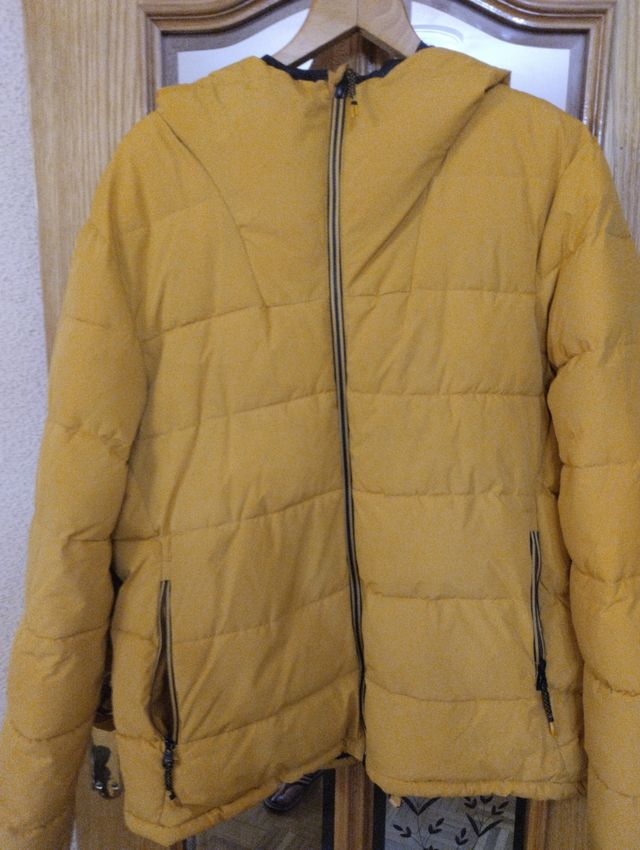 Plumas amarillo mostaza con capucha. Talla L/XL