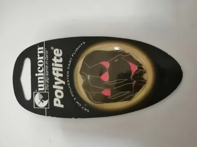 Set de 3 plumas para dardos de la marca Unicorn, modelo Polyflite. - Fabricadas en poliéster. - Diseño en color negro con detalles en rosa y blanco.