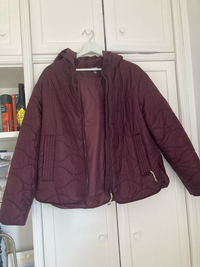 Plumífero corto color berenjena, da más talla